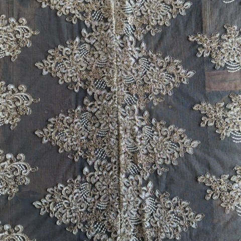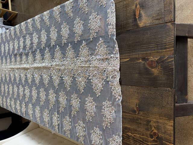 DescriptionThis ivory and champagne Camila lace table overlay with floral embelishments adds elegance and softness to a table setting, allowing the color and surface underneith to subtly show through creating depth and contarst. It measures 80 inches by 80 inches. Pictures show this lace displayed on a wooden farm table.